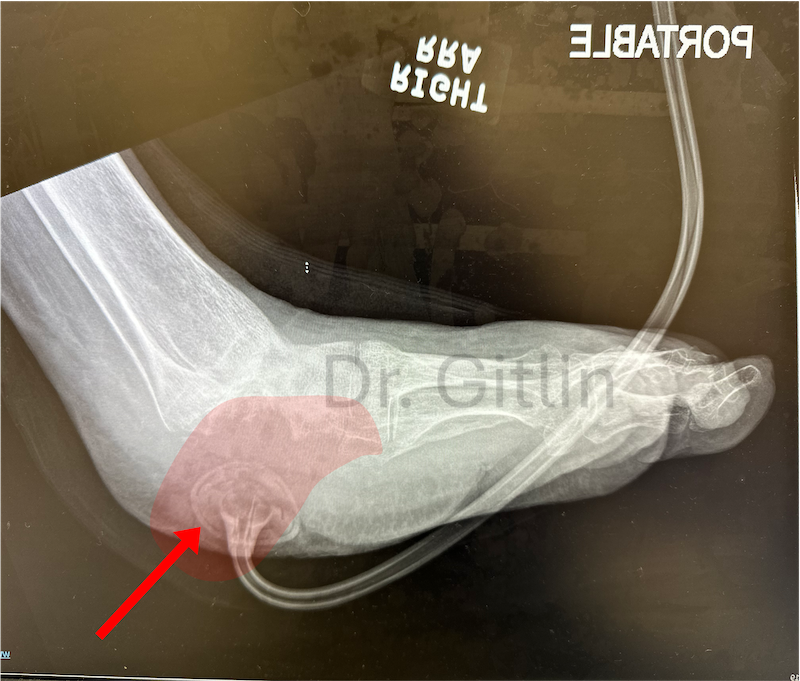 Below is a photo of the patients foot after the removal of the infected bone. You can see the degree of deformity and unusual appearance with no heel bone.